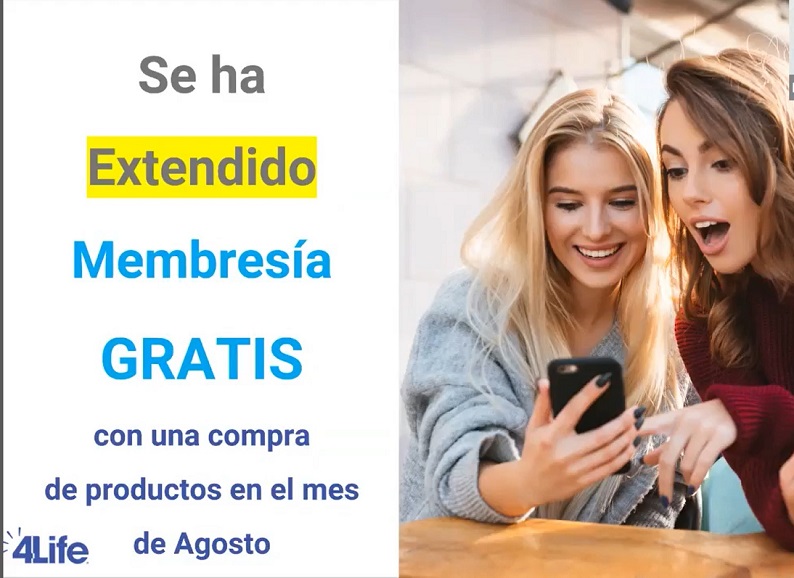 Se ha extendido en el Mes de Septiembre la Membresía por tiempo limitado Gratuito por una compra de productos 4life. Consulte para que conseguir tus productos a precios mayorista !